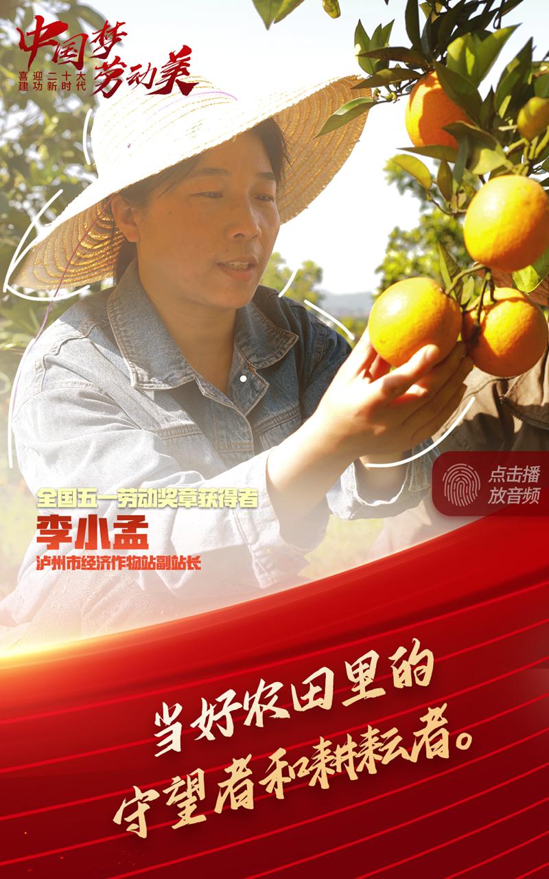 “对我来讲,最大的荣誉,莫过于能够看到农民朋友们因收获累累硕果而笑容满面,我想,这也是每一个一线农业工作者的心声。”李小孟希望自己培育出更甜的水果,让泸州水果产业品牌更响、让当地果农能够丰产致富、让自己的工作更有价值。