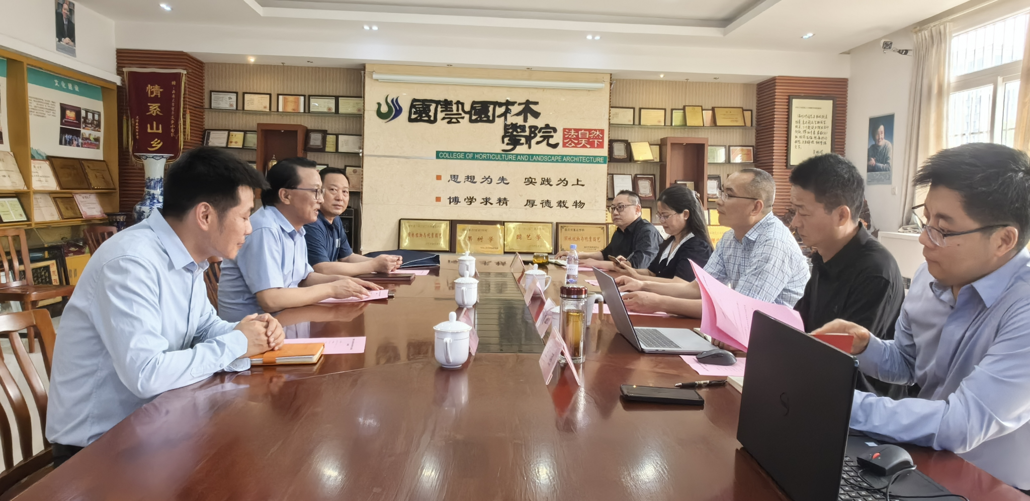 会后,一行人参观了隆平楼枇杷种质资源与利用创新团队、园艺植物发育与逆境生物学创新团队实验室、南方山地农业教育部工程研究中心、重庆市油菜工程技术研究中心。此次校际调研交流加深了兄弟院校间的友谊,加强了校际间的交流合作。