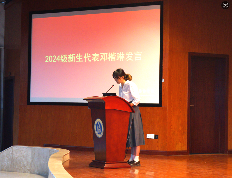 新生代表邓楷琳在发言中首先向辛勤耕耘在教育一线的老师们致以了最崇高的敬意,随后阐述了她对院训“法自然,公天下”的感悟,她认为新澳门六合彩开奖直播