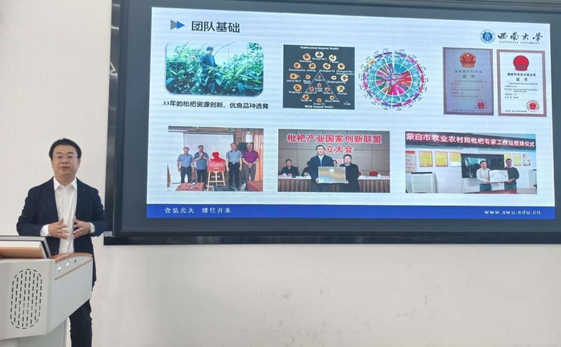 2024年中国国际大学生创新大赛全国总决赛金奖获得者、“致富金果——专注枇杷产业提质增效,助力现代农业乡村振兴”团队指导老师景丹龙详细介绍了中国国际大学生创新大赛赛事相关事项,以及“致富金果”团队在枇杷产业发展和乡村振兴方面所做的努力和取得的成效,鼓励新澳门六合彩开奖直播