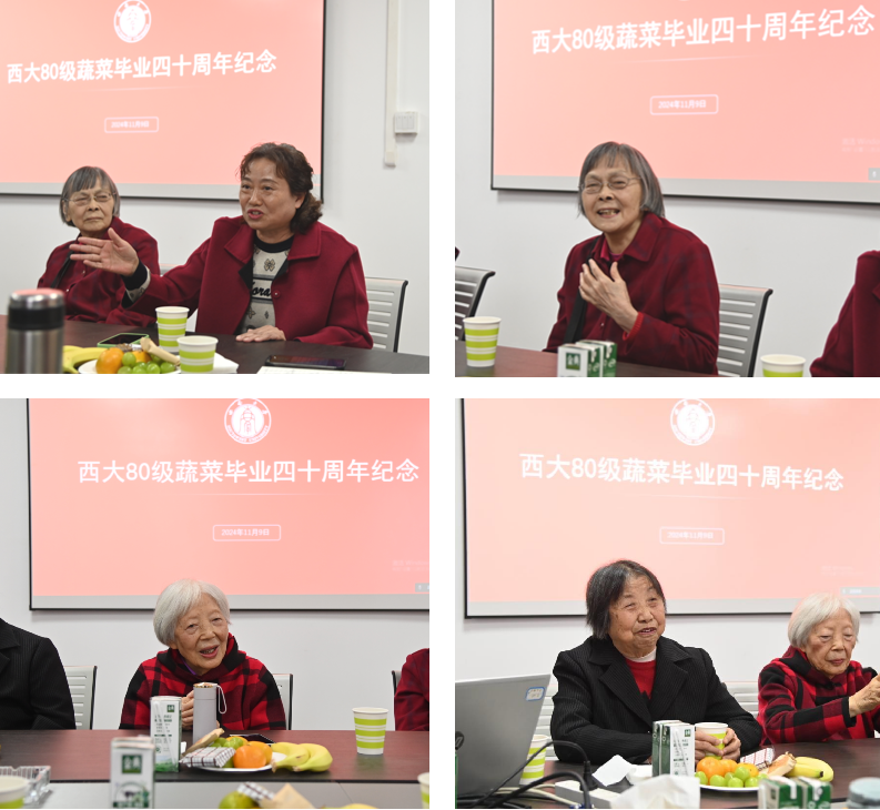 随后,曾为1980级蔬菜专业学生授课的4位教师依次讲话,她们带领大家回顾了那段难忘而美好的岁月。有的老师以“忆往昔,看今朝,展未来”为主题,从个人的经历和体会出发,引导大家回顾过去的学习生活,分享那些难忘瞬间和成长故事。有的老师对校友们在国家发展中做出的贡献表示感谢,并提出即便退休也要发挥余热,在自己职业生涯中继续前进,一定要活到老、学到老、用到老,乐观积极、心情愉快地面对生活。