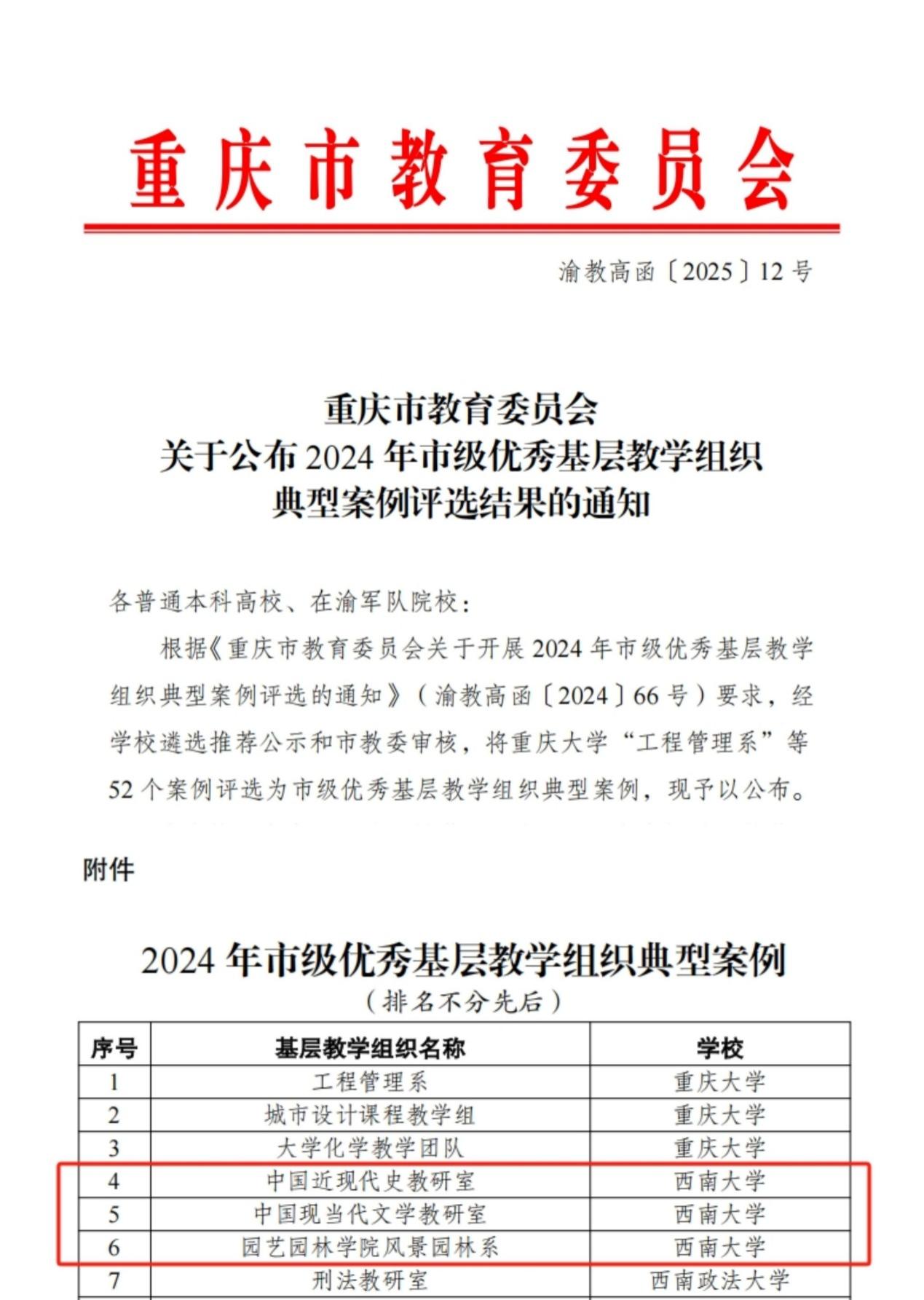 重庆市教育委员会近期发布《关于公布 2024 年市级优秀基层教学组织典型案例评选结果的通知》,新澳门六合彩开奖直播