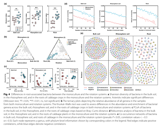 轮作作为一种经典的农田管理措施,除了有助于调节养分循环、改善土壤结构外,还被发现对多种土传病害具有一定的缓解作用。然而,轮作所带来的“土壤健康”改善并非仅由理化性质变化决定,植物与根际微生物之间复杂而动态的互作也可能在其中扮演关键角色。近年来,“土壤微生物遗产(soil microbial legacy)”成为土壤生态学领域的新兴热点,其核心在于前茬作物通过根系分泌物调控土壤微生物群落,从而影响后茬作物的生长和抗病性。