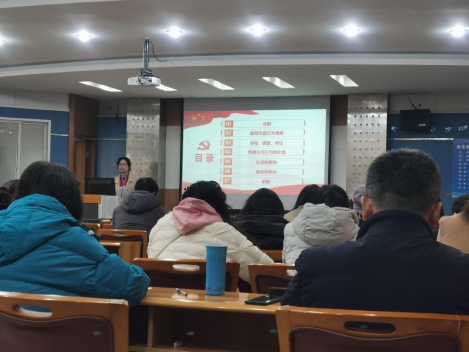 在33教406报告厅组织召开2022年第一次全体教职工政治理论学习会暨2021年总结大会,全体教职工参加会议,会议由党委书记李雪梅主持。
