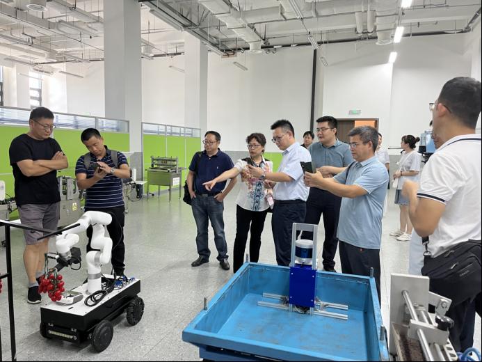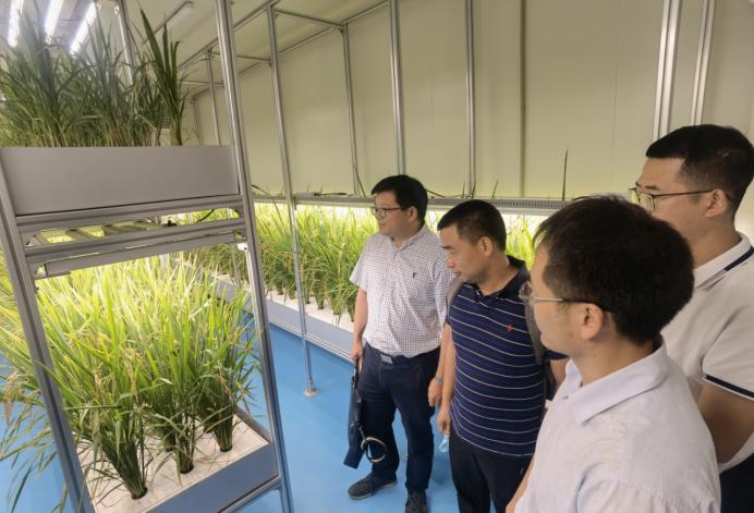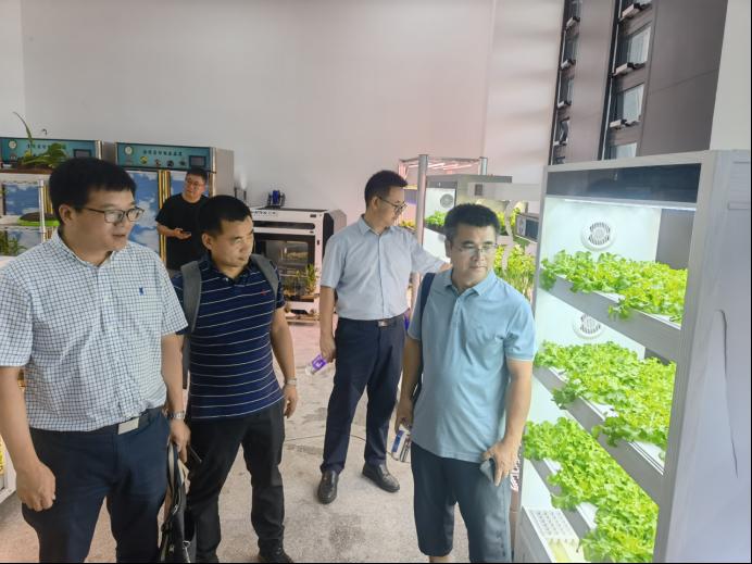 一行人首先参观了中国农科院都市农业研究所的都市农业楼和垂直农业中心。中心陈列有“植物工厂水稻育种加速器”等智能园艺装备、垂直植物工厂智能设备、智能园艺机器人,展示了多层立体栽培等技术等先进园艺栽培设备与技术。都市农业研究所共设置智能园艺装备研究中心、植物光生物学研究中心、功能植物与观赏植物培育研究中心、城市有机废弃物资源化利用研究中心、植物与人类健康研究中心、都市农业理论与规划研究中心。目前,该所共有9个核心科研团队且各具特色,已在科学研究、成果转化等方面取得了可喜的成绩。