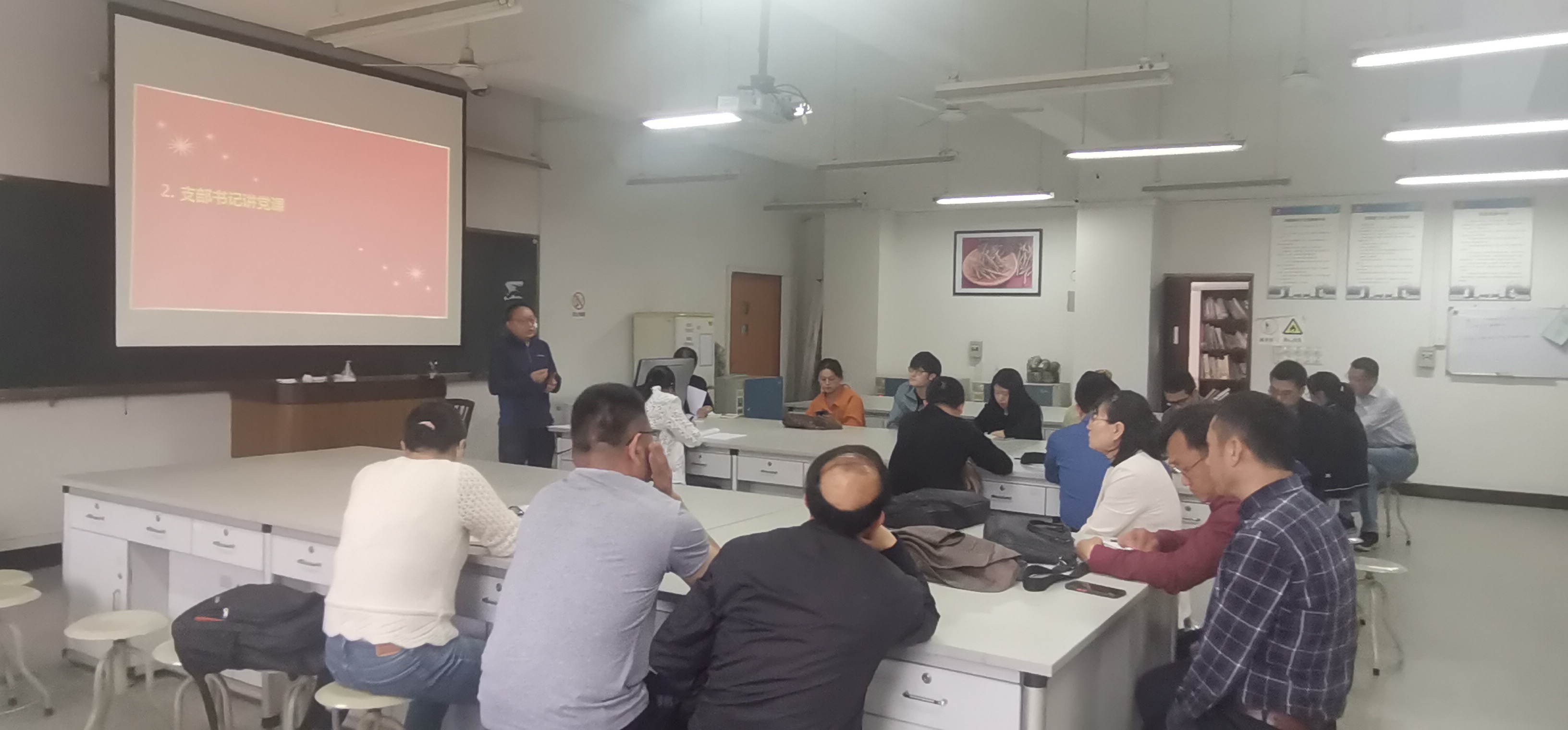 首先,全体党员认真学习了习近平总书记在学习贯彻习近平新时代中国特色社会主义思想主题教育工作会议上的重要讲话精神。接着,支部书记郭启高讲党课。郭启高围绕“如何培养德智体美劳全面发展的社会主义建设者和接班人”这一时代命题,结合习近平总书记关于人才培养的讲话精神,社会主义建设者和接班人应具备素质、教师应做的重要工作、个人体会三方面,进行了深度讲解。