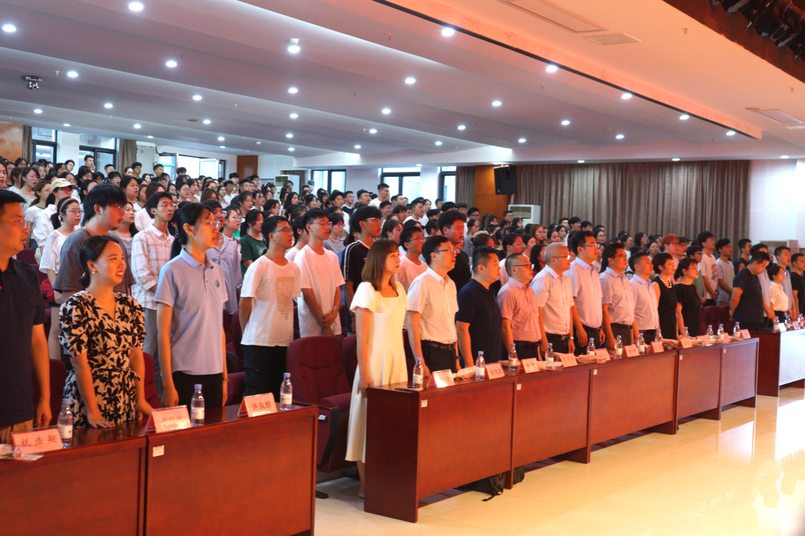 见面会在庄严的国歌声中拉开序幕,全体师生起立、齐唱国歌,共同唱响对祖国的热爱与敬意。这不仅是对新生进行爱国主义教育的重要一课,也是激励他们在未来学习生活中不断奋斗的精神力量。