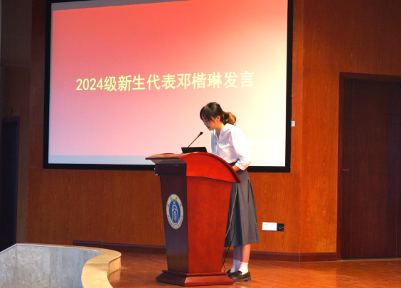 新生代表邓楷琳在发言中首先向辛勤耕耘在教育一线的老师们致以了最崇高的敬意,随后阐述了她对院训“法自然,公天下”的感悟,她认为新澳门六合彩开奖直播