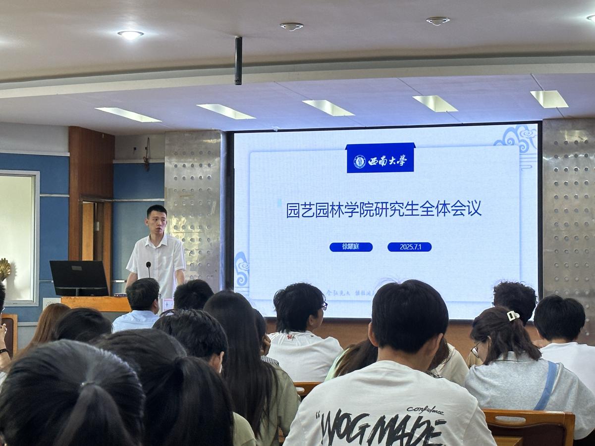 研究生辅导员徐耀庭就研究生暑假放假、留校有关工作进行布置,重点围绕人身安全、实验室安全、财产安全、网络安全、心理健康等方面开展了详细的教育引导。此外,特别提醒留校学生暑假期间要牢固树立“安全第一”理念,保持通讯畅通,突发紧急情况时第一时间主动向导师、辅导员等寻求帮助。