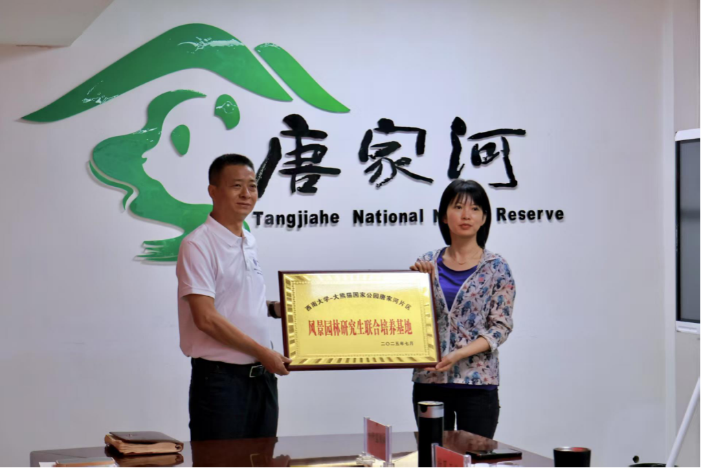 随后,周建华书记代表学校向唐家河国家级自然保护区管理处授牌“西南大学-大熊猫国家公园唐家河片区风景园林研究生联合培养基地”,标志着双方在人才培养、科研实践领域迈入深度合作新阶段。