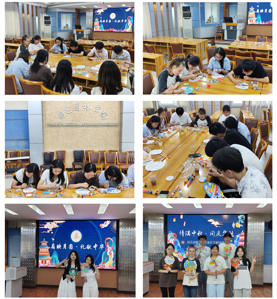 团扇承巧思,山河传文韵。团扇铺展于桌,颜料、画笔整齐排列,同学们蘸朱红绘宫灯盏盏,调明黄描圆月融融。用墨色手绘“欢度国庆”“中秋佳节”,牡丹、翠竹、天安门、玉兔等元素相融,让扇面既含中秋意蕴,又藏家国情怀。笔尖流转间,原本空白的扇面渐次生动。绘制完成之后,同学们轻摇团扇,不仅感受到亲手创作的成就感,更触摸到了中华优秀传统文化的深厚底蕴,让文化传承在指尖流转、在心中扎根。