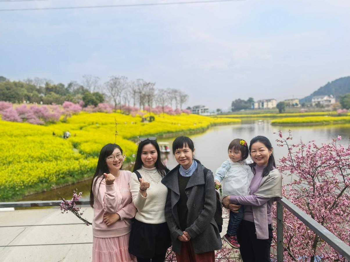 教职工抵达重庆市巴南区二圣镇,天坪山的海拔高度约600 米,山顶平坦开阔,四周群山环绕,自然植被丰富,现已建成的核心景区约1100亩,包括十里花果休闲长廊、清华白鹭潭湿地公园、滨湖花海、星空露营、水上运动、格桑花海、紫薇园、海棠园、杜鹃园、杨梅园等景点,孕育出了花海、湖景、民宿、露营、亲子、采摘、研学、团建、赛事等特色农文旅体验项目,是重庆主城近郊的高山花海农文旅主题景区。层叠错落的油菜花海间嵌着青石板铺就的观景步道,新澳门六合彩开奖直播