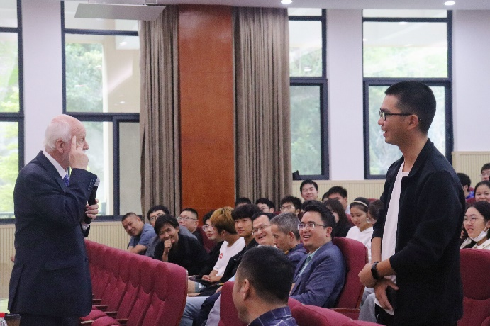 互动提问环节,在场师生反响热烈,表示收获颇丰,并就学习生活中遇到的困惑、如何坚持学习等问题与Dr.Don Grierson展开交流,Dr.Don Grierson认为研究生应该多读好文章,并且坚定自己热爱的东西,坚持做下去就会豁然开朗。Dr.Don Grierson的精彩报告扩展了同学们的学术视野,启迪了同学们的学术思维,锻炼了同学们的外语交流能力,为同学们今后的科研道路奠定了基础。